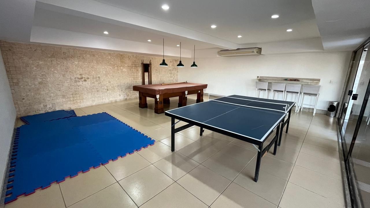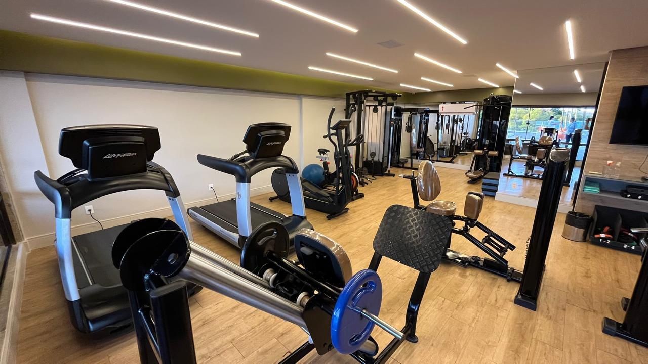 Salão de festas, quadra poliesportiva, piscina com raia, salão de jogos, parque infantil, brinquedoteca, academia super equipada, sauna e serviço bar para atendimento na piscina.
