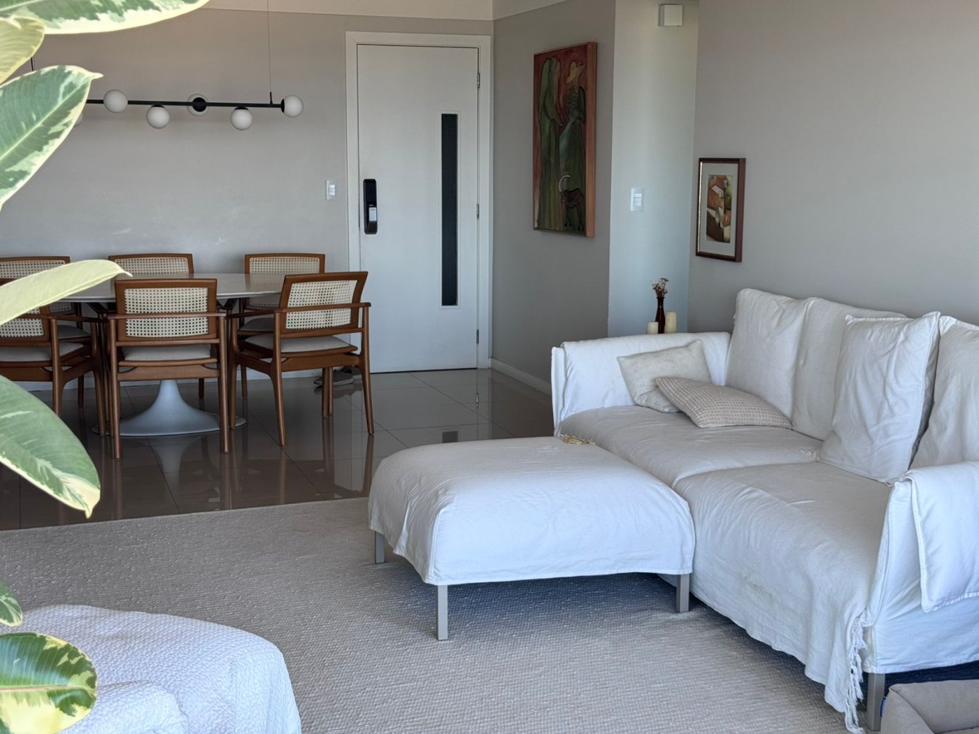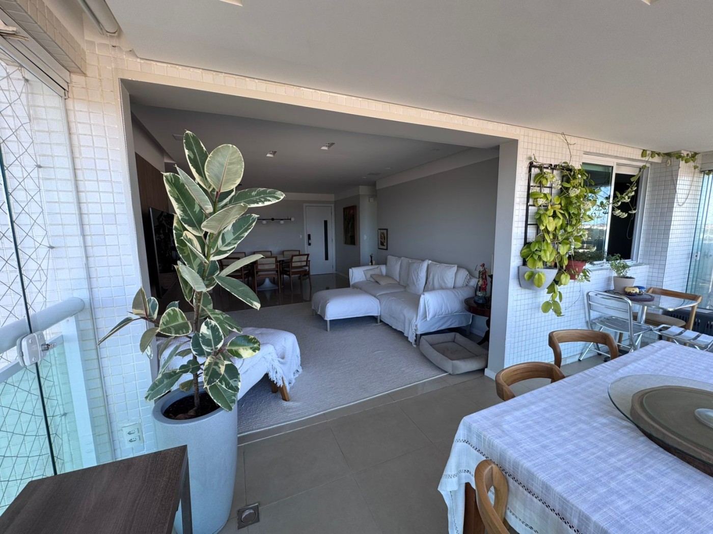 Varanda integrada à sala, com fechamento em vidro