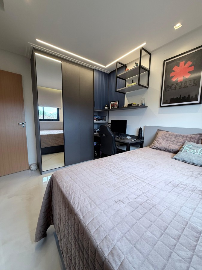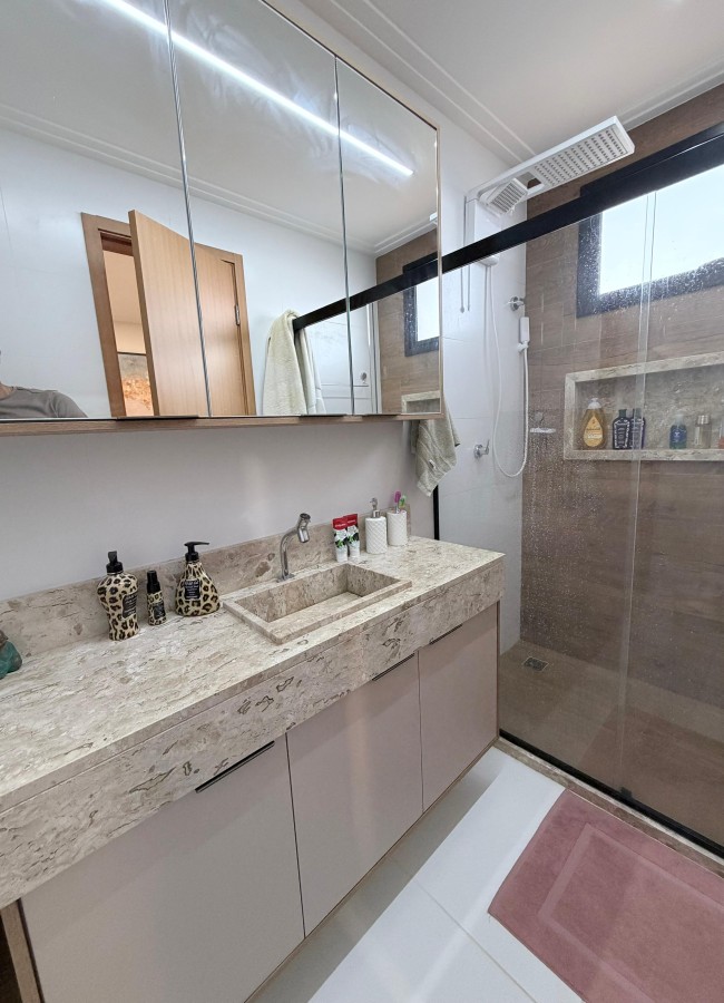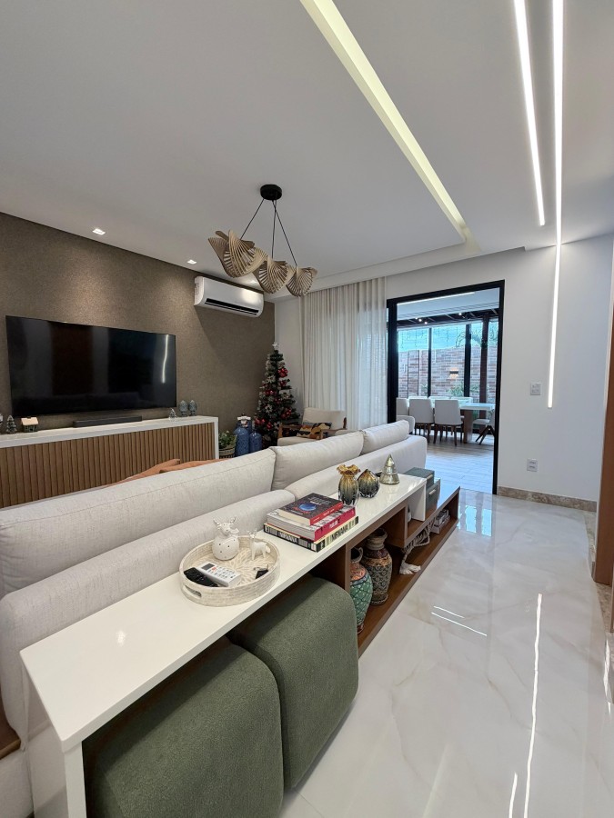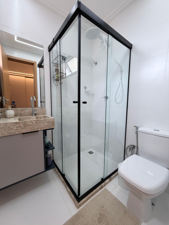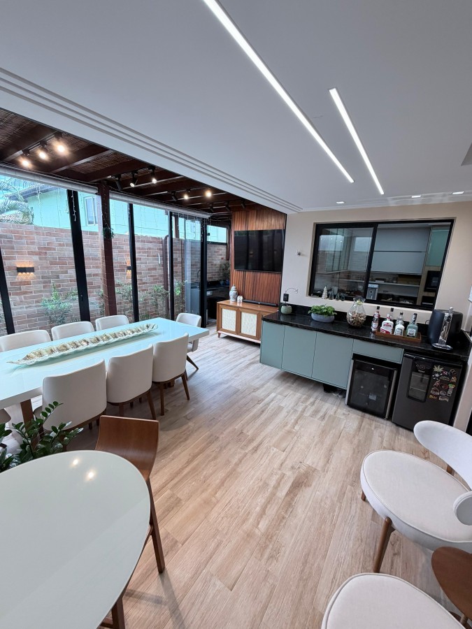 Casa condomínio fechado, 3 suítes, lavabo, 2 vagas de garagem, finamente decorada, PORTEIRA FECHADA, espaço gourmet privativo com churrasqueira, área construída de 124m2, terreno de 140m2, armários planejados italínea em todos ambientes totalizando 5 ar-condicionados, projeto de iluminação, porcelanato em toda casa.