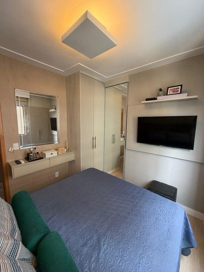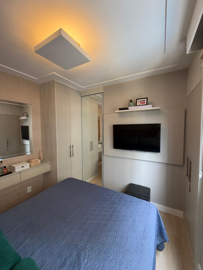 Apartamento à venda de 3 quartos com 1 suite em armação no Mont Saint Michel, 71 m2, totalmente reformado, móveis planejado em todos os cômodos, teto rebaixado em gesso, projeto de iluminação, cortina de vidro na varanda, banheiro social e de serviço, porcelanato, andar alto, 01 vaga de garagem coberta. Condomínio com total área de lazer