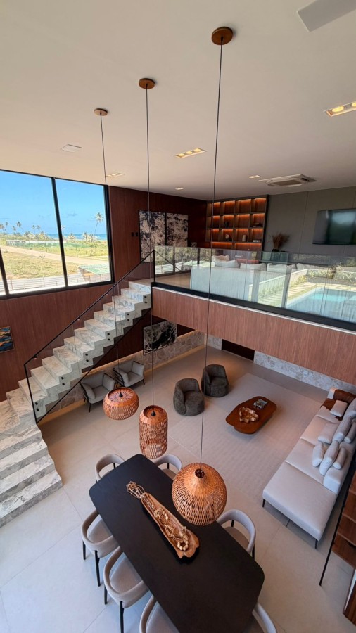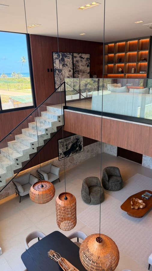 • 1 suíte no térreo + 4 suítes no andar superior + 1 varanda ampla vista mar