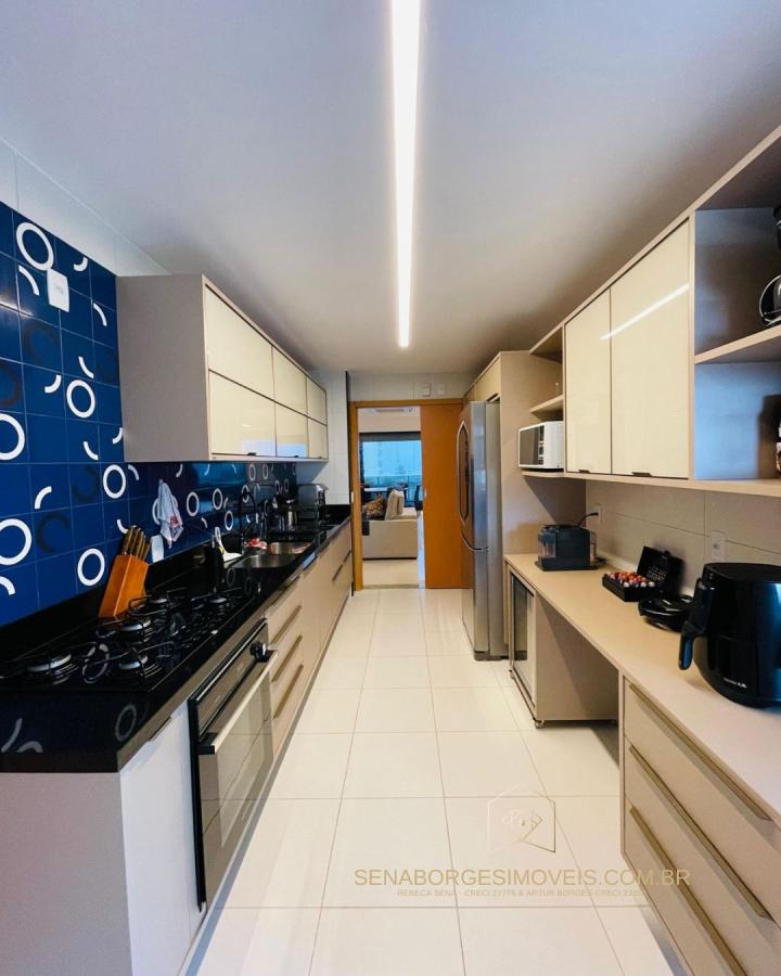 | Metragem de 165m² | 3 suítes e closet na suíte master | lavabo | 30m² de varanda gourmet com vista mar.  O apartamento está no porcelanato 1,00m X 1,00m, todos os móveis planejados da Bahia Closet, projeto de iluminação, cortinas da sala com automação…