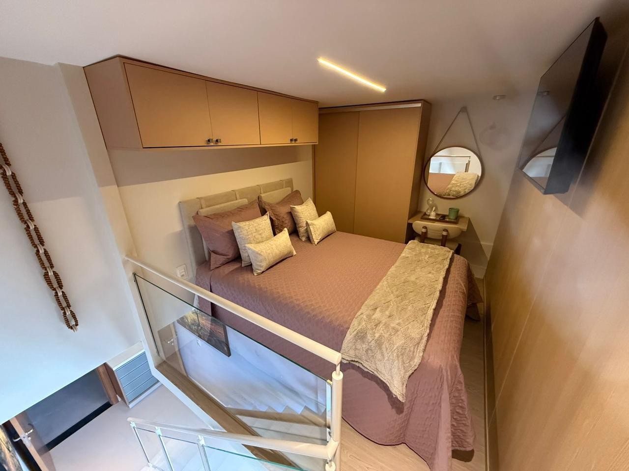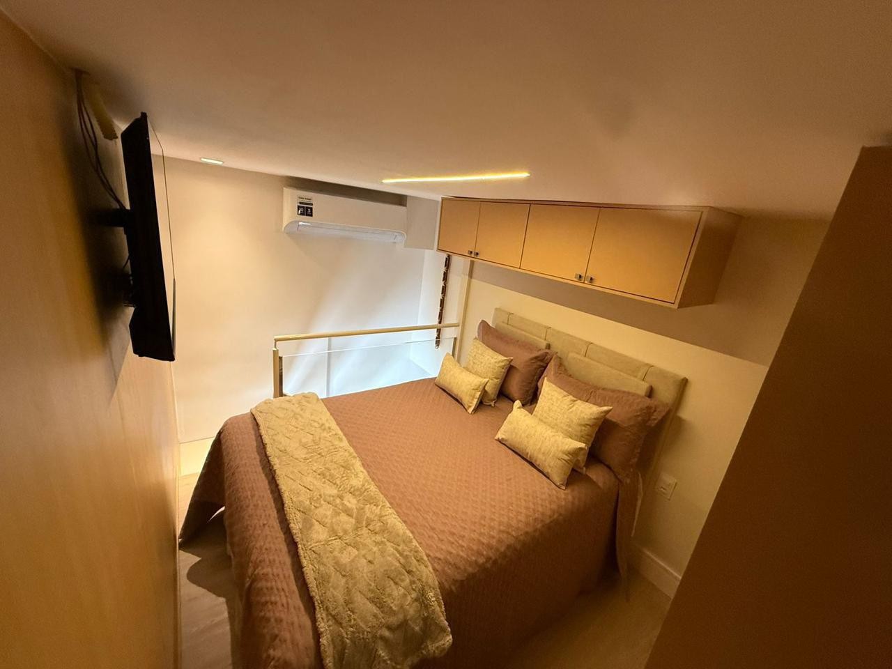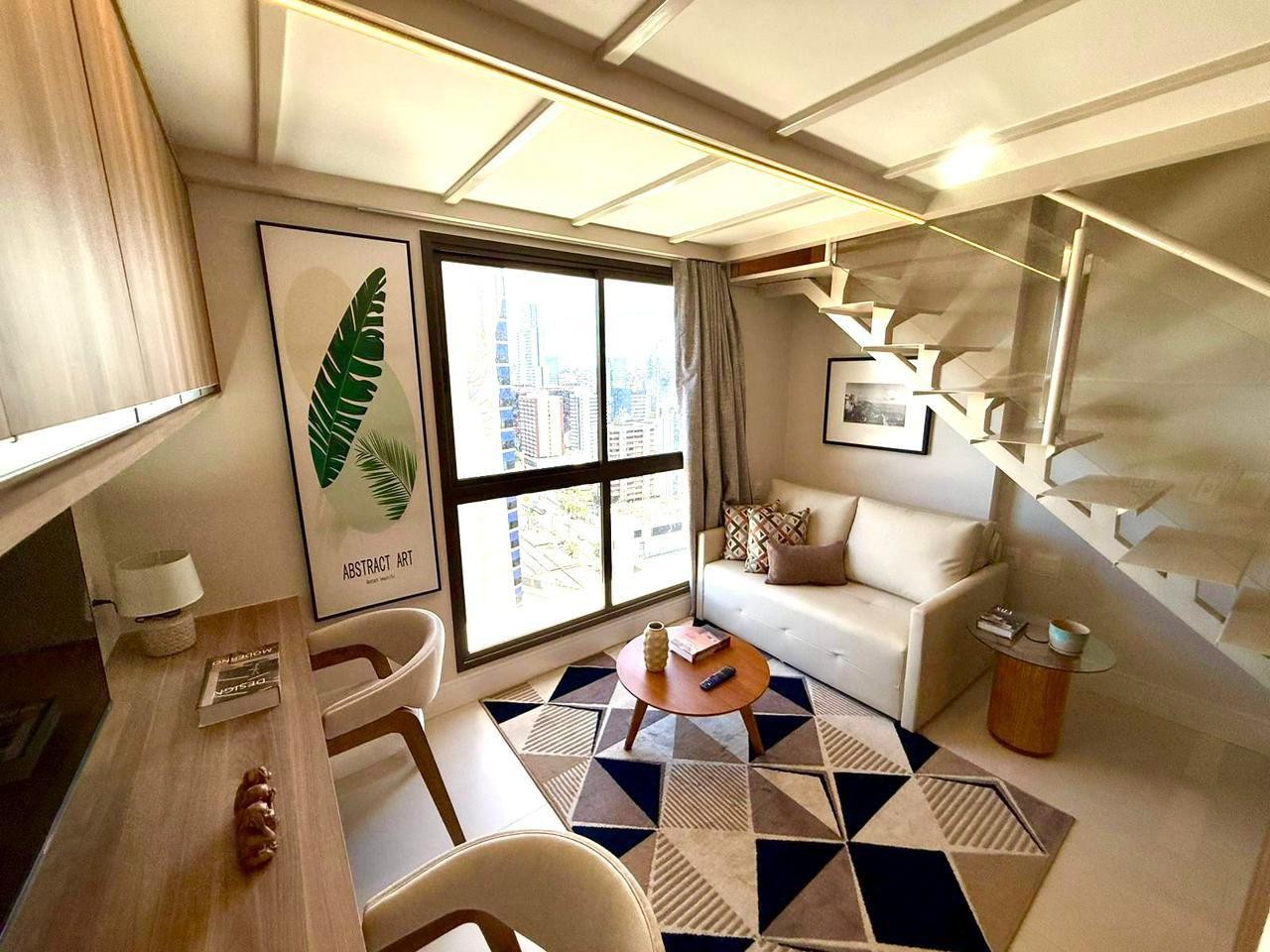 Studio aconchegante, finamente decorado, com mezanino, e localização nobre, no Caminho das Árvores.