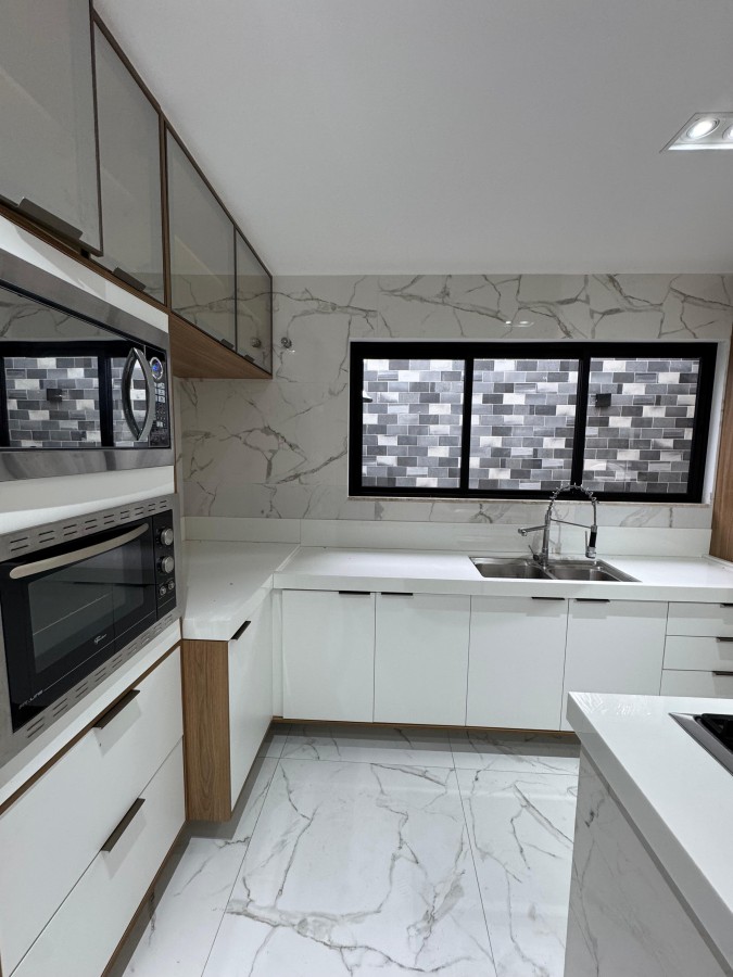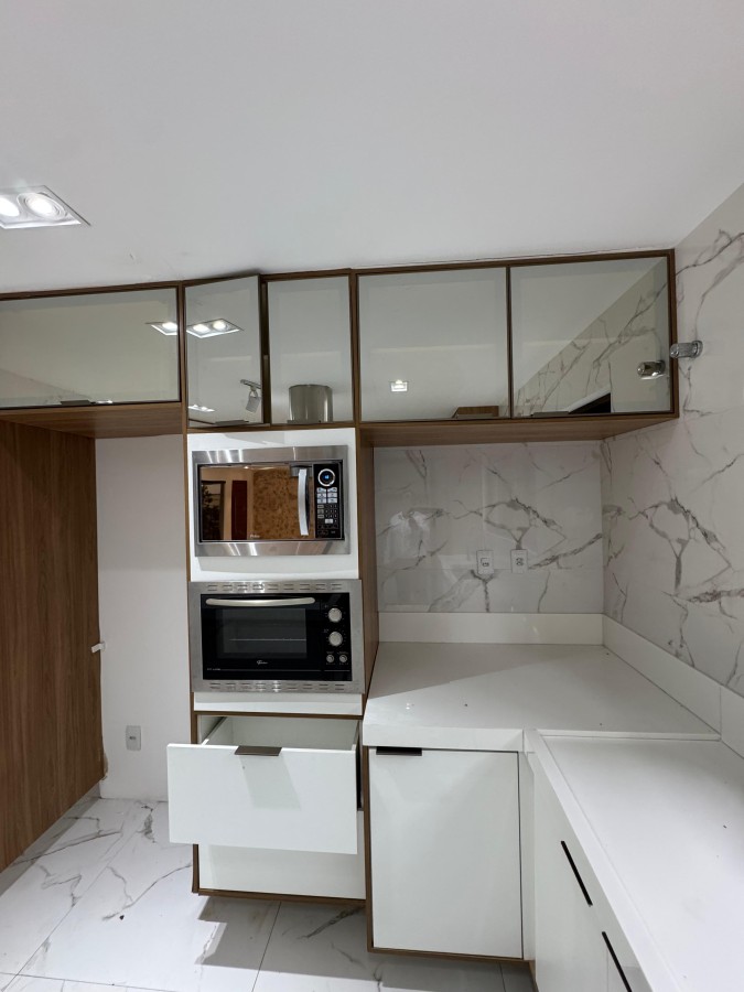 Luxuosa Cozinha com ilha bancada Nano Glass