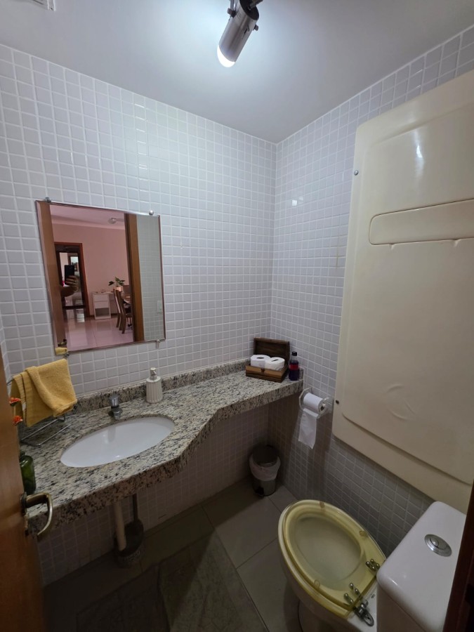 São 3 suítes + gabinete, lavabo, varanda com fechamento de vidro, porcelanato, nascente total, varanda, dependência completa, 3 vagas de garagem soltas + depósito.
