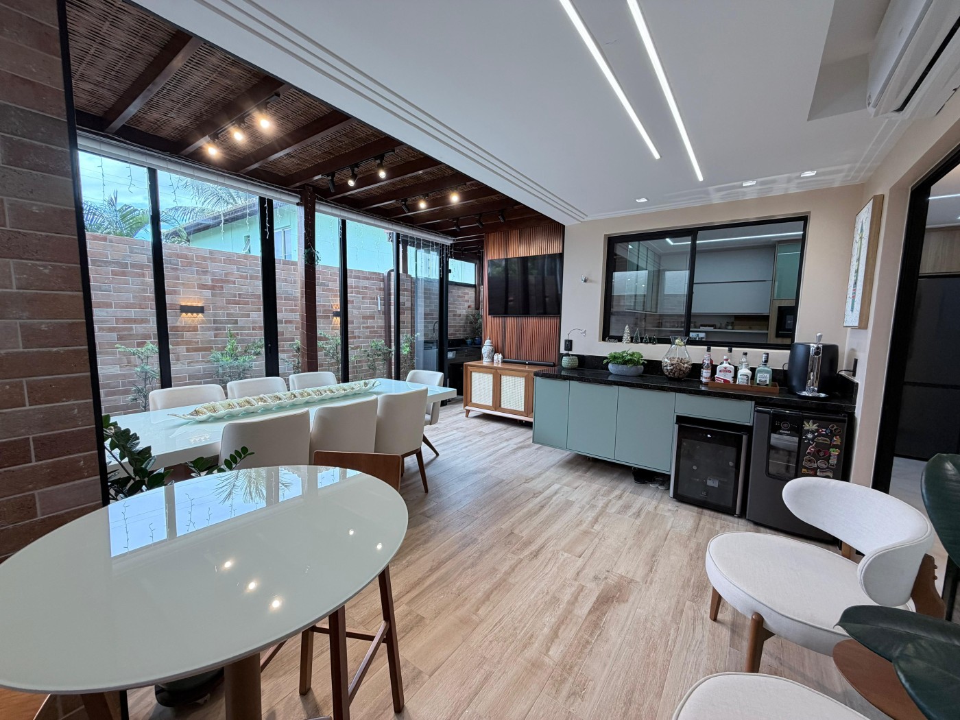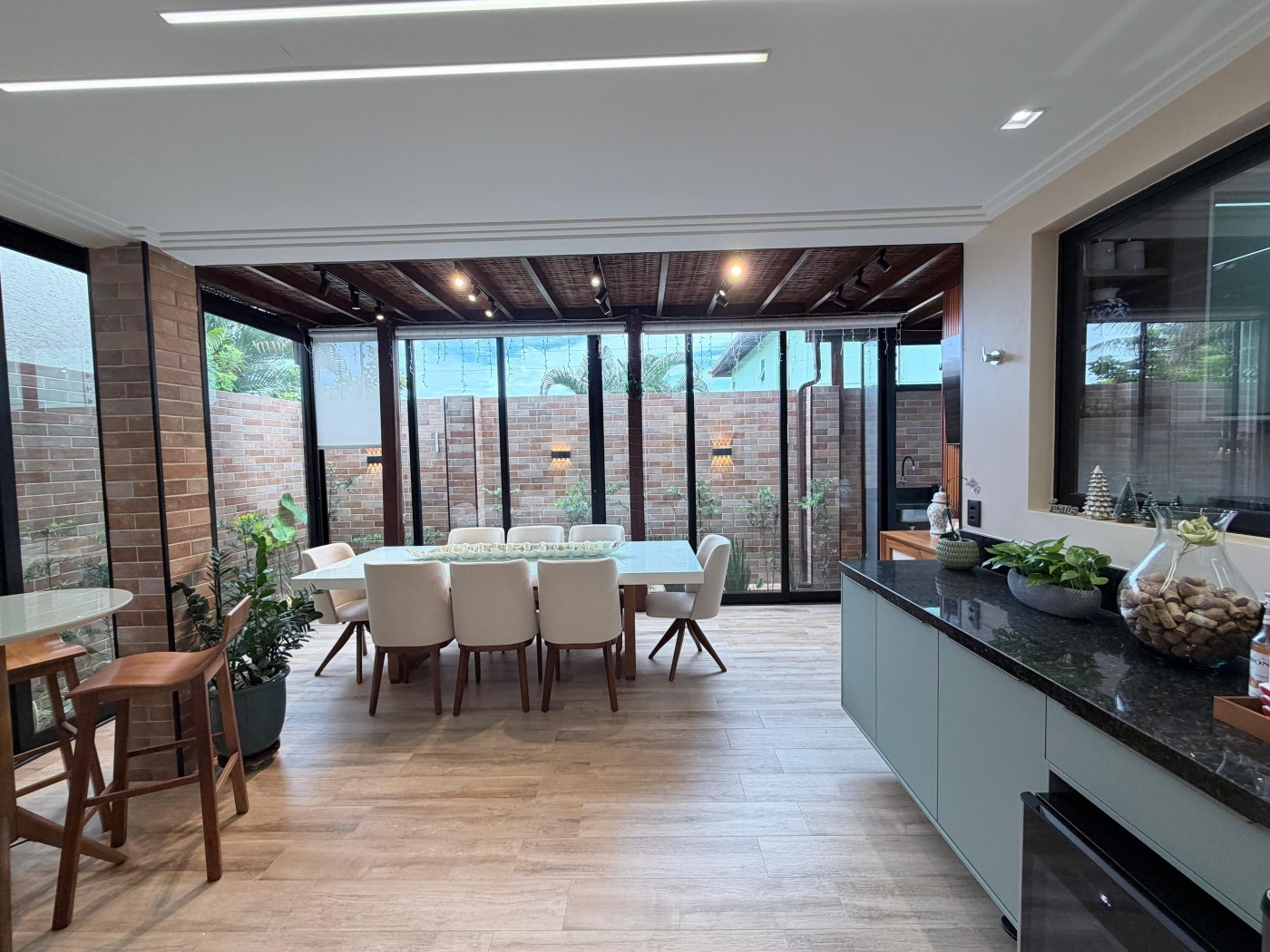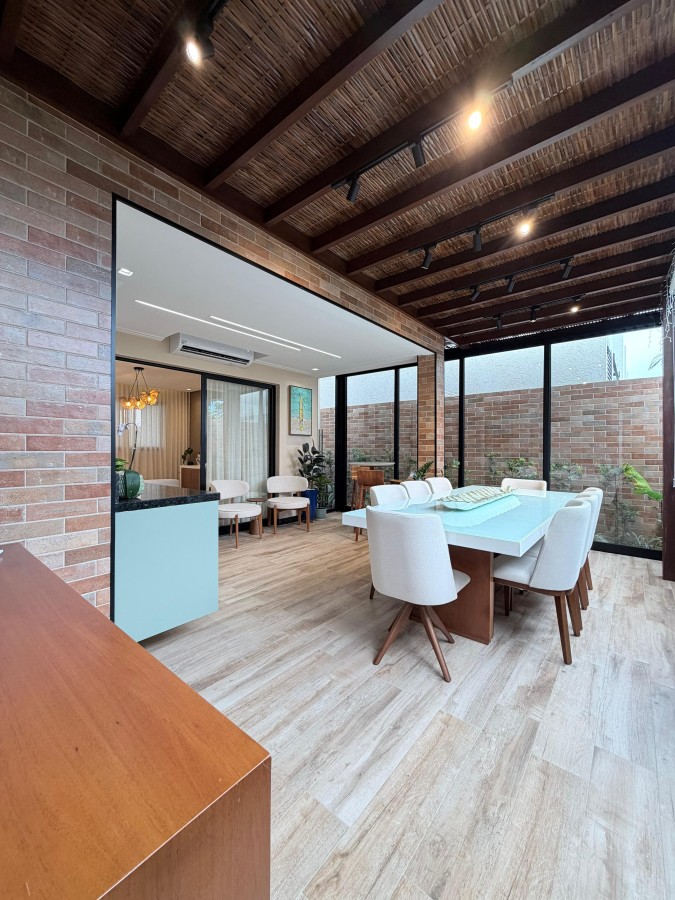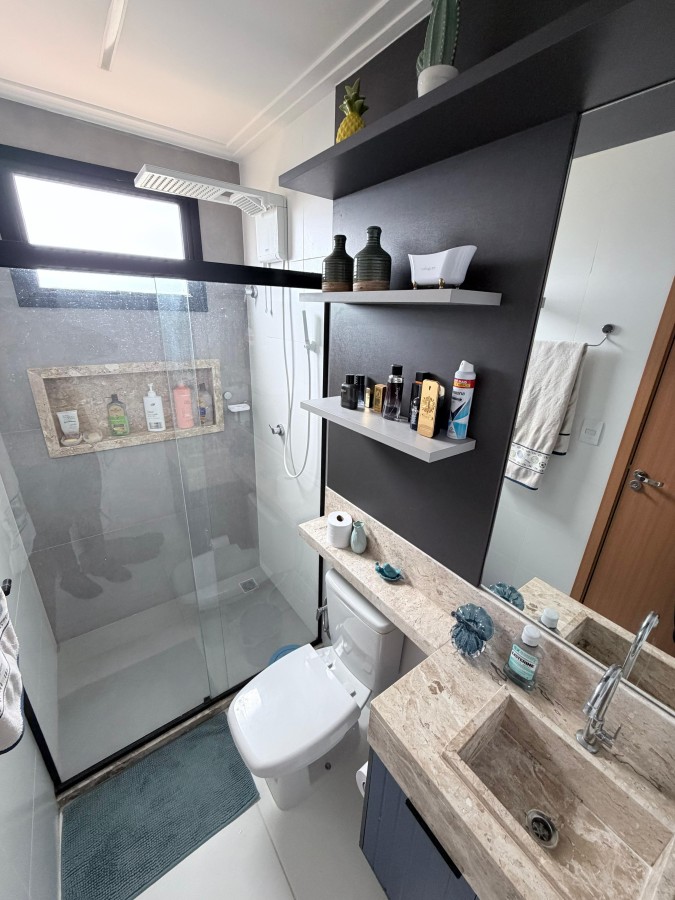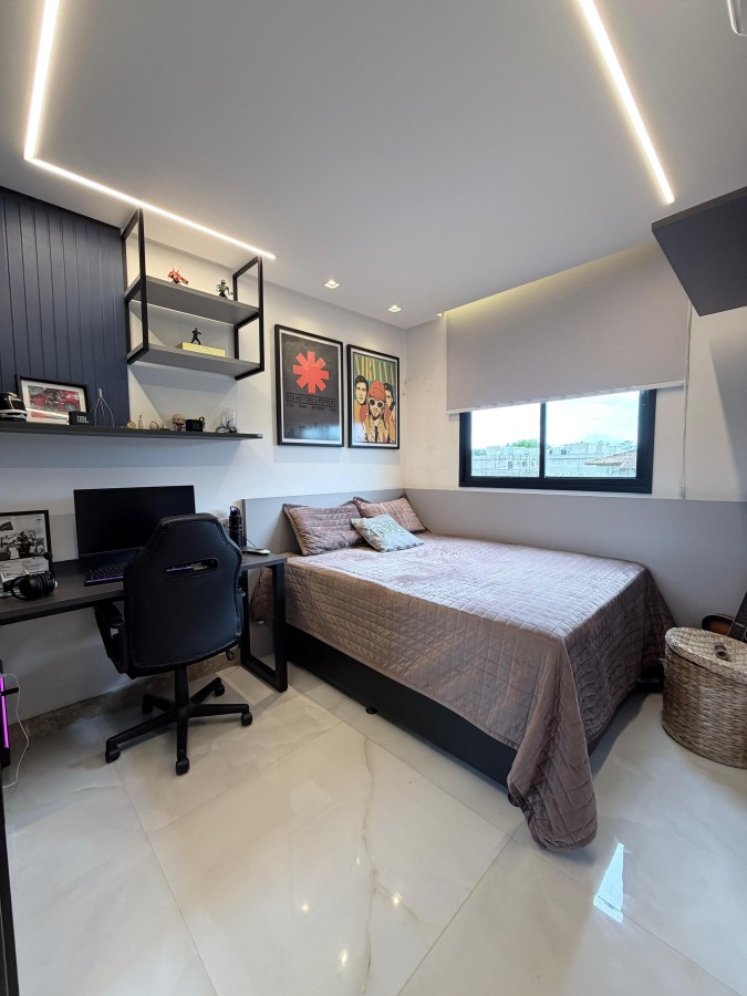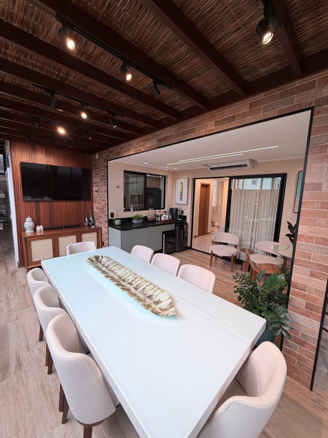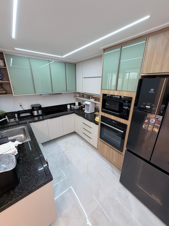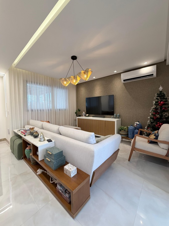 Casa condomínio fechado, 3 suítes, lavabo, 2 vagas de garagem, finamente decorada, PORTEIRA FECHADA, espaço gourmet privativo com churrasqueira, área construída de 124m2, terreno de 140m2, armários planejados italínea em todos ambientes totalizando 5 ar-condicionados, projeto de iluminação, porcelanato em toda casa.