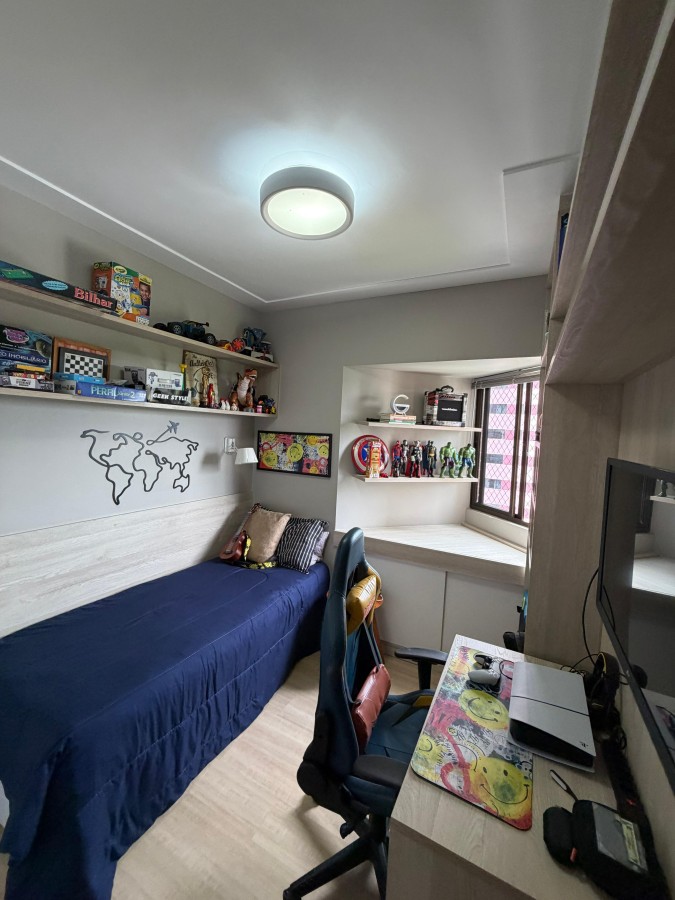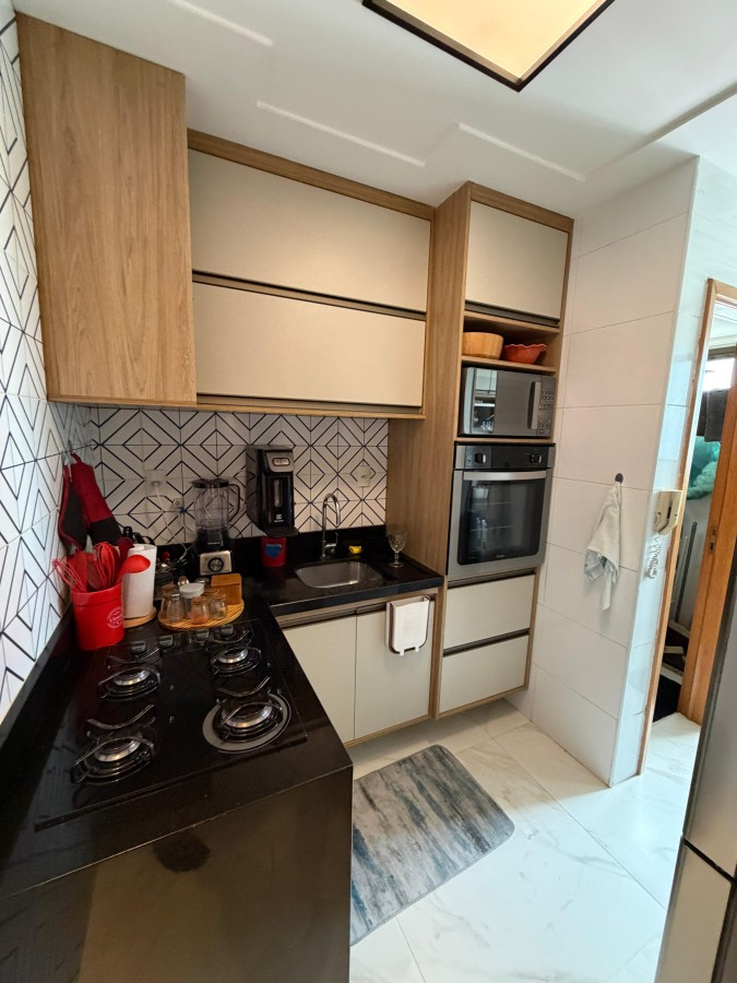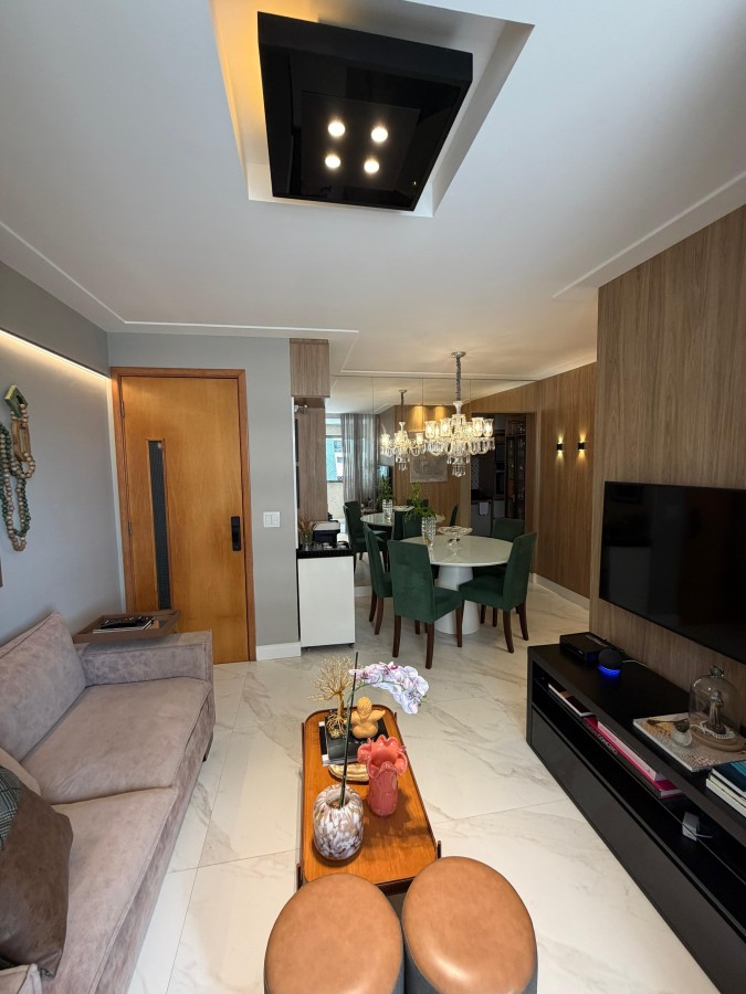 Apartamento à venda de 3 quartos com 1 suite em armação no Mont Saint Michel, 71 m2, totalmente reformado, móveis planejado em todos os cômodos, teto rebaixado em gesso, projeto de iluminação, cortina de vidro na varanda, banheiro social e de serviço, porcelanato, andar alto, 01 vaga de garagem coberta. Condomínio com total área de lazer