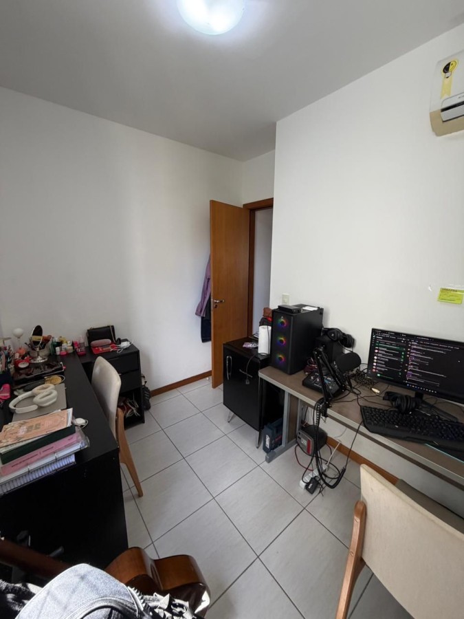 Apartamento com 2/4 (1 suíte) + Home Office, banheiro Social e serviço, área de serviço com porta de serviço, varanda fechada com reiki, posição solar Norte/Sul (Extremamente ventilado), andar alto com vista livre, armários fixos nos quartos e cozinha, ar-condicionado nos quartos e home, fechadura digital, 2 vagas de garagem cobertas.