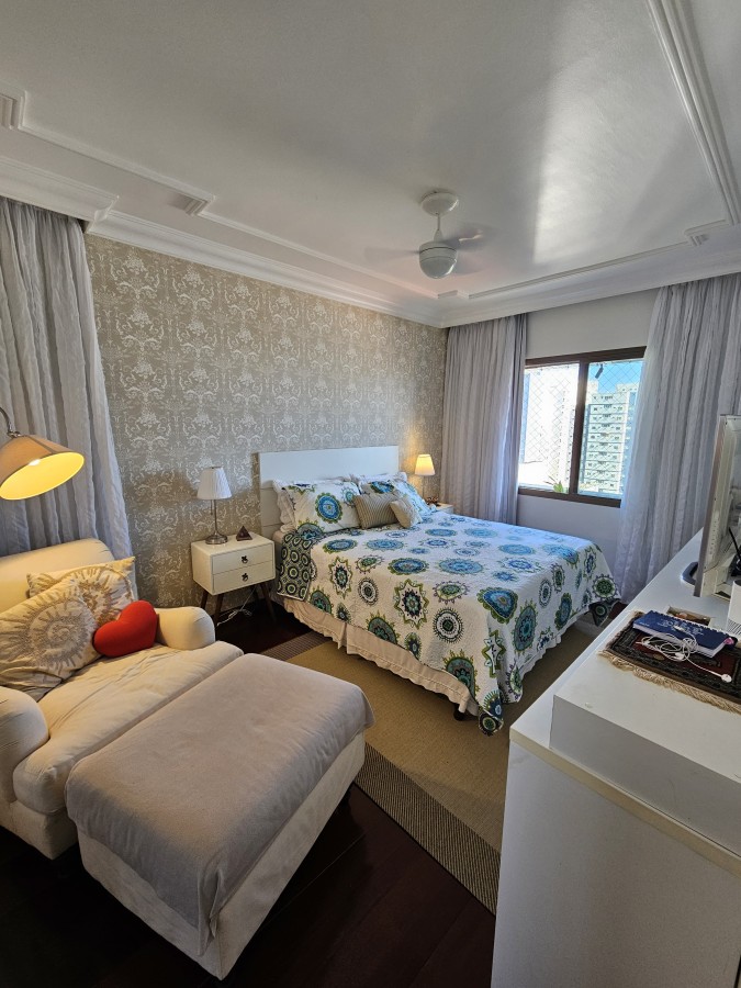 São 4/4 sendo 2 suítes e a master com closet, 167m², nascente, andar alto, varanda, armários planejados, banheiro social, dependência completa, 2 vagas de garagem + depósito.